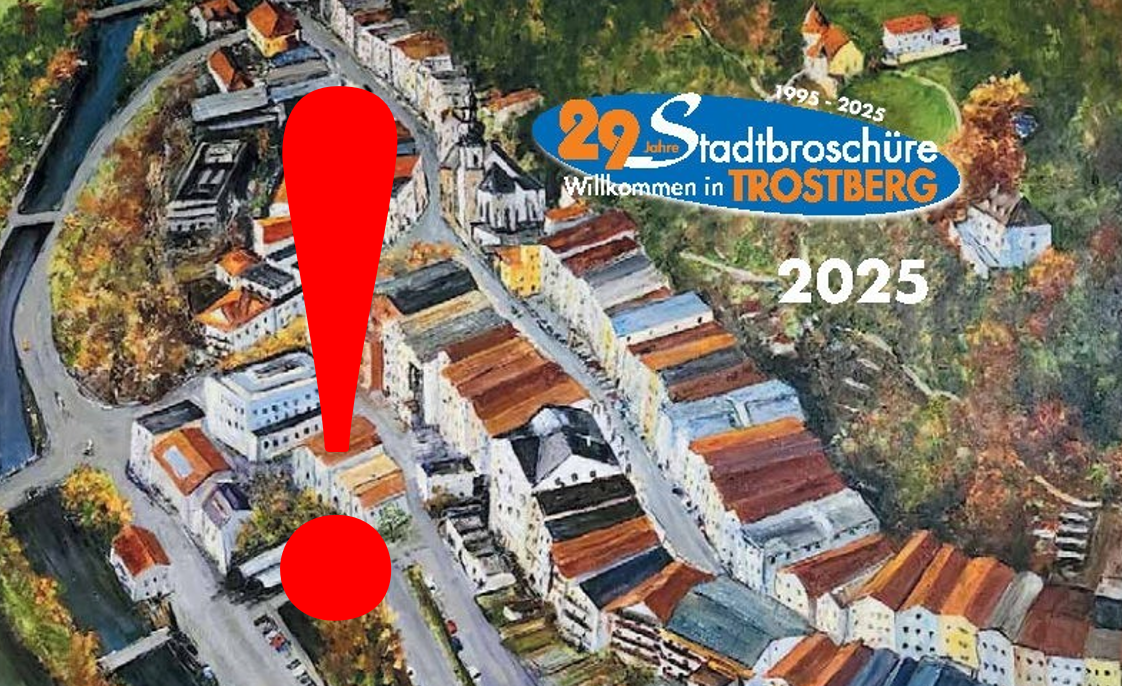 Sie Stadtbroschüre, will wie eine Art Schaufenster sein und Ihnen einen Einblick geben in unsere liebenswerte Stadt mit ihren Ortsteilen Lindach, Heiligkreuz und Oberfeldkirchen. Wir wollen Sie einladen, sich einen Überblick zu verschaffen über all die verschiedenen Angebote und zahlreichen Veranstaltungen, die Trostberg zu bieten hat. Die Stadtbroschüre finden Sie in Papierform bei uns im Rathaus und auch digital auf unserer Homepage. Klicken Sie hierfür einfach auf das Titelbild links vom Text. Viel Spaß beim Stöbern!